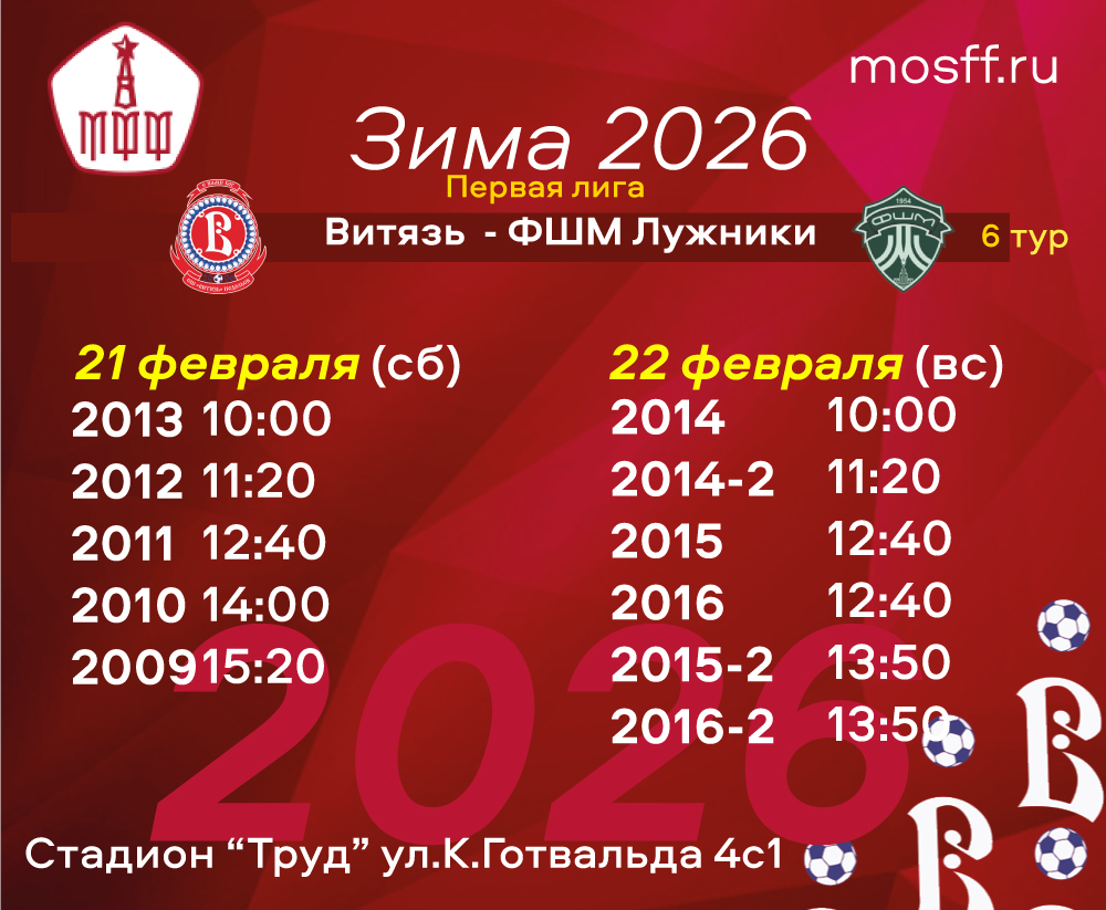 Витязь - ФШМ Лужники 6 тур Зима 2026 Первая лига
