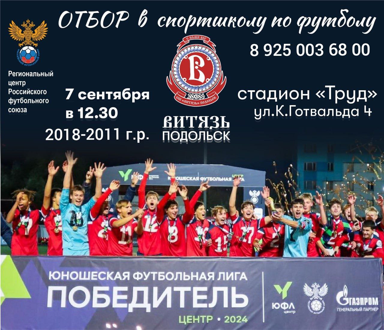 Набор в спортшколу по футболу "Витязь"